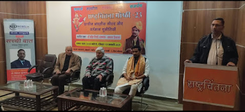 GNIOT के सभागार में “प्राचीन भारतीय गौरव और वर्तमान चुनौतियाँ” विषय पर राष्ट्रचिंतना की तेईसवीं गोष्ठी का आयोजन किया गया ।गोष्ठी की अध्यक्षता प्रो बलवंत सिंह राजपूत ने की। उन्होंने अपने आशीर्वचन में भारतीय ज्ञान परंपरा में काशी और बनारस हिंदू विश्वविद्यालय की महत्ता पर प्रकाश डाला। गोष्ठी में मुख्य वक्ता श्री महिम तिवारी, संस्थापक सनातन शिक्षालय रहे। मां भारती व मां सरस्वती के चित्र के सम्मुख दीप प्रज्वलित कर तथा पुष्प अर्पित कर गोष्ठी का प्रारंभ किया गया। कार्यक्रम में विंग कमांडर आर एन शुक्ला, नरेश गुप्ता, प्रो राजेंद्र पुरवार, राजेंद्र सोनी, इंद्रजीत सिंह, डॉ नीरज कौशिक, इं रविन्द्र पाल सिंह, संजीव शर्मा, राकेश कुमार सिंह, प्रो सतीश गर्ग, माधुरी गर्ग, अवधेश गुप्ता, ज्योति सिंह, धर्म पाल भाटिया, विनोद शर्मा, कवयित्री अंजलि शिशोदिया, डॉ संदीप कुमार, राजेश बिहारी, संगीता वर्मा, जयवीर जी, नरेंद्र श्रीवास्तव, उमेश पांडे, भोला ठाकुर, कैप्टन शशि भूषण त्यागी, अनिल बिधूडी, पंकज, विनीत तोमर, के पी सिंह, संजीव शर्मा, आयुष पांडे, डी के पचौरी, विनय श्रीवास्तव, प्रेरणा, विपुल, विपिन राजावत, पूर्णिमा आदि प्रबुद्धजन उपस्थित थे। नरेश गुप्ता ने धन्यवाद ज्ञापित किया। कार्यक्रम का समापन राष्ट्रगान द्वारा किया गया।